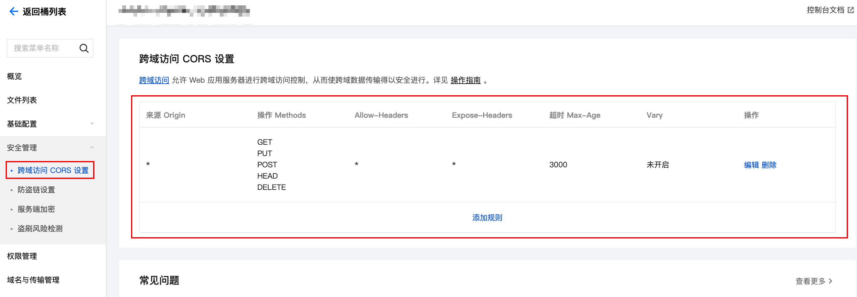 如果您遇到错误 Failed to set CORS configuration. Please configure it manually (无法设置 CORS 配置,请手动配置),请前往存储桶列表配置 CORS,参考下图: